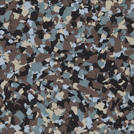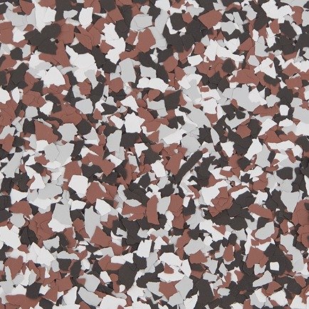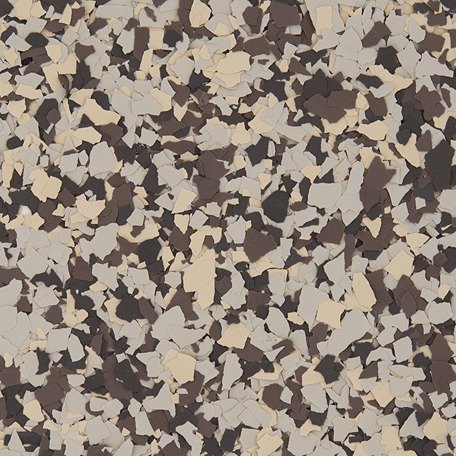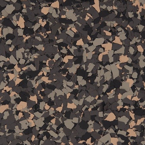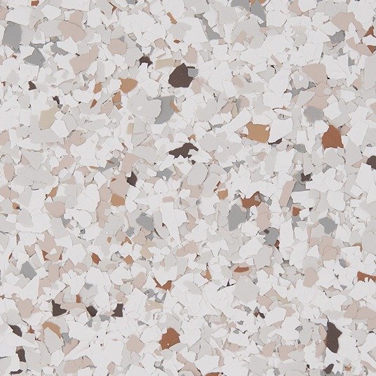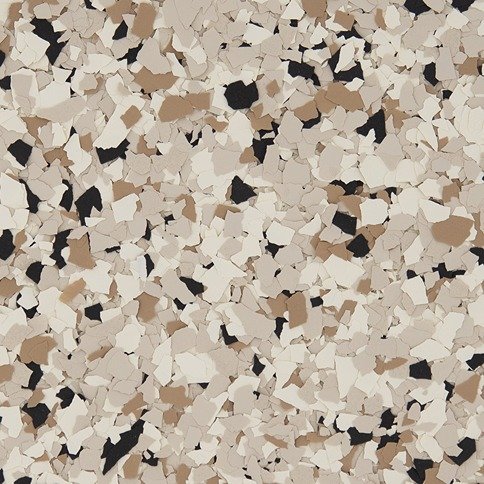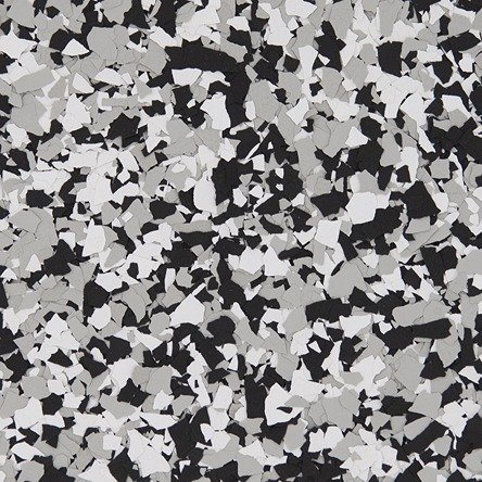 The vinyl chip layer provides texture, hides imperfections, and adds visual depth. It also increases slip resistance compared to smooth epoxy systems.
